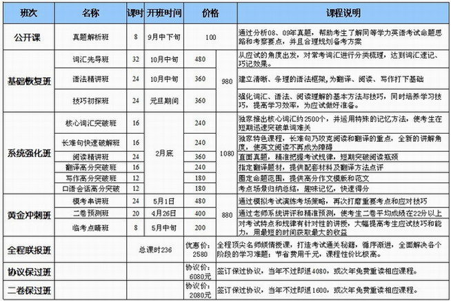 3、报名英语全程面授或协议保过班,再报综合学科享受9折优惠。