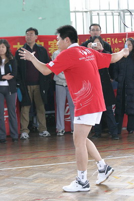 第一轮的比赛在天大—河工大、天财—南开之间展开。比赛的形式也是多种多样,有男单、女单、男双、混双等。选手们个个意志高涨,击球动作稳、准、狠,丝毫不给对手以可乘之机;双方的啦啦队也在积极地为自己的队员呐喊助威,会场里充满了意气风发与豪迈干云。