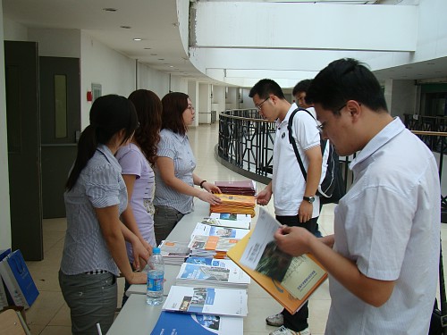 入场前,准备好的各种招生简章 学生们免费索取各校招生简章
