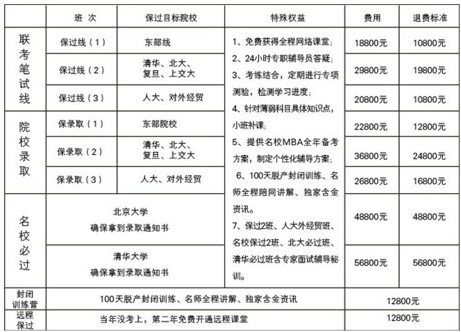 训练营保过班次、费用及权益