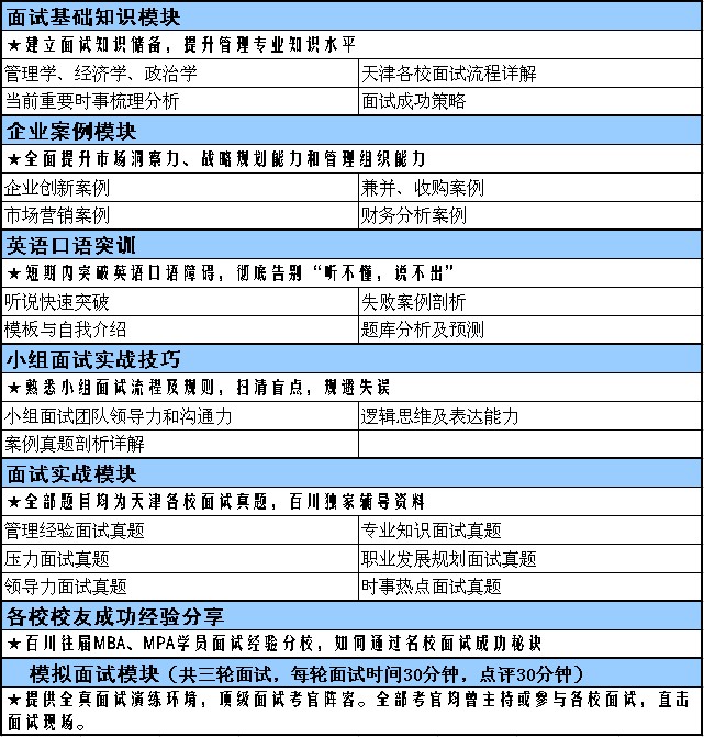 • 天津市唯一提供全程MBA/MPA/MEM面试辅导的培训机构