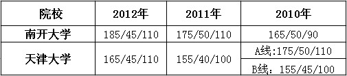 2.双证录取:2012年秋季录取45人,2013年未定。由南开大学研究生院确定录取分数线,根据考试成绩(含复试),择优录取。学费:共计36000 元。持录取通知书办理入学手续时交纳,可一次性交齐,也可按年度交纳。